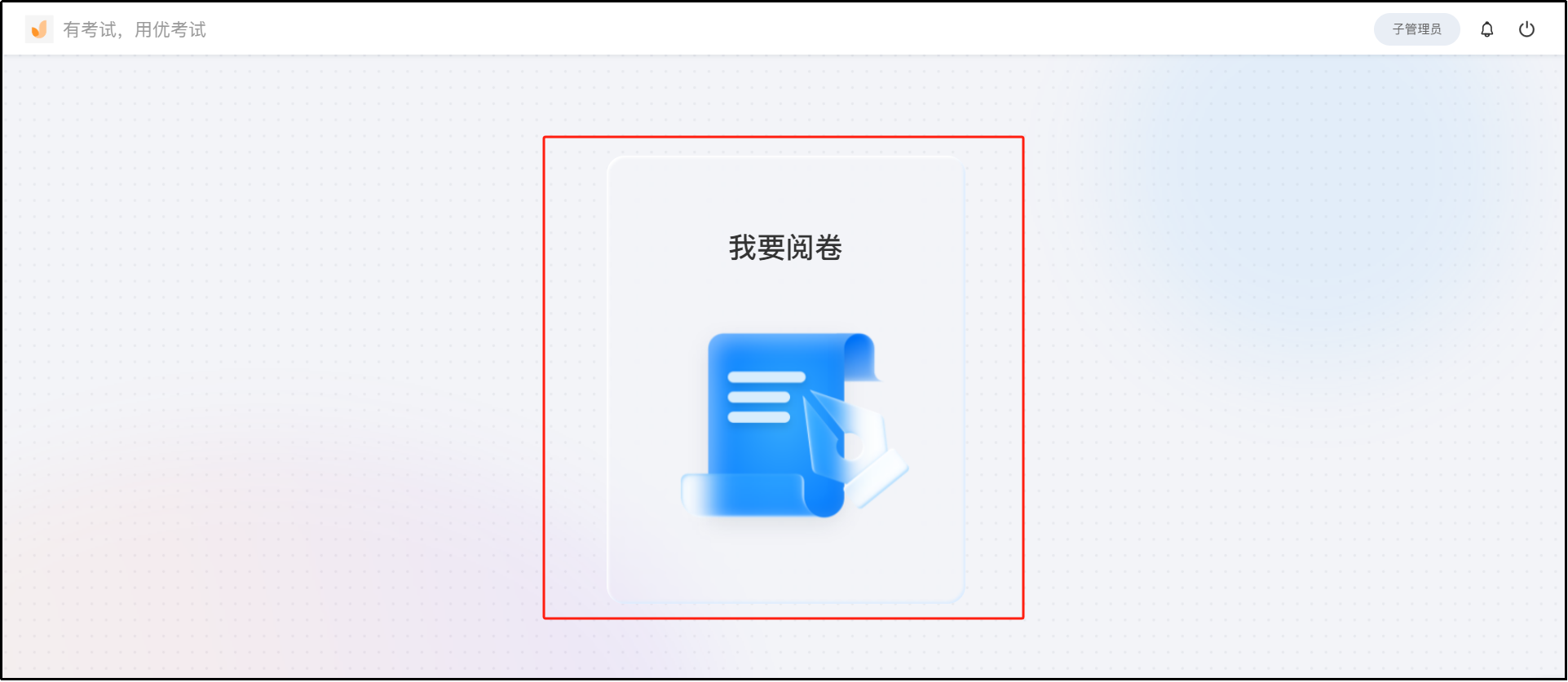 3、然后登录我们的子管理账号,即可看到只有批卷这一个选项,该分类部门的子管理只可批卷,没有其他权限。