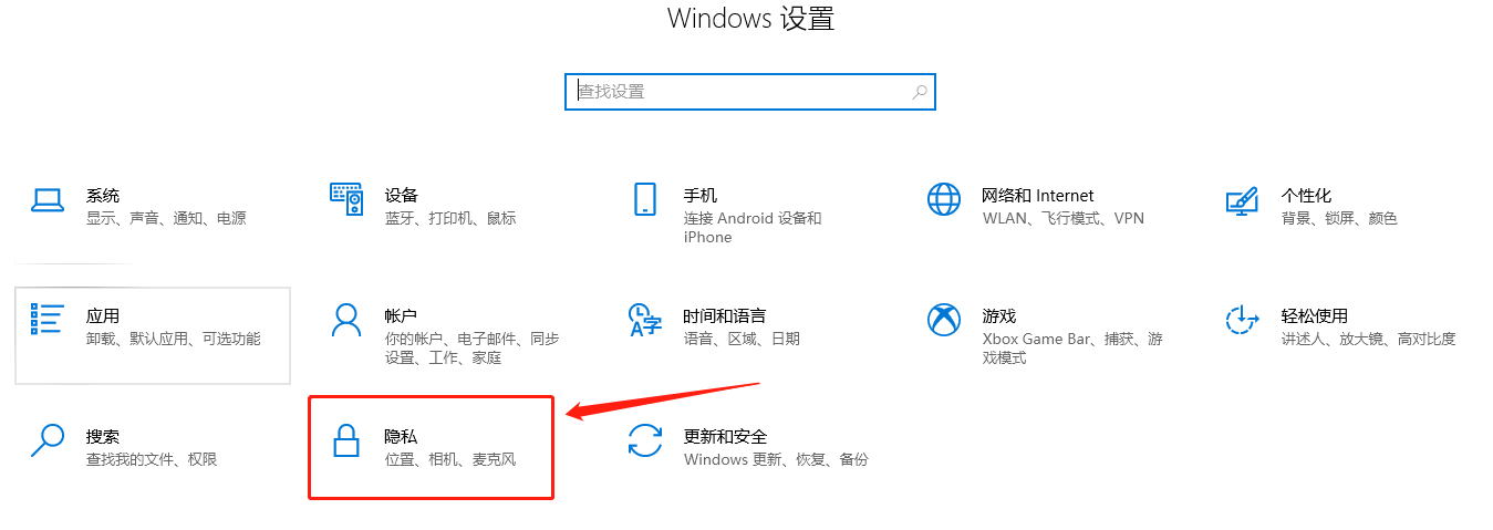 在设置中点击打开隐私设置。
